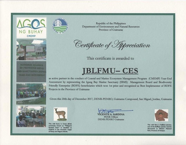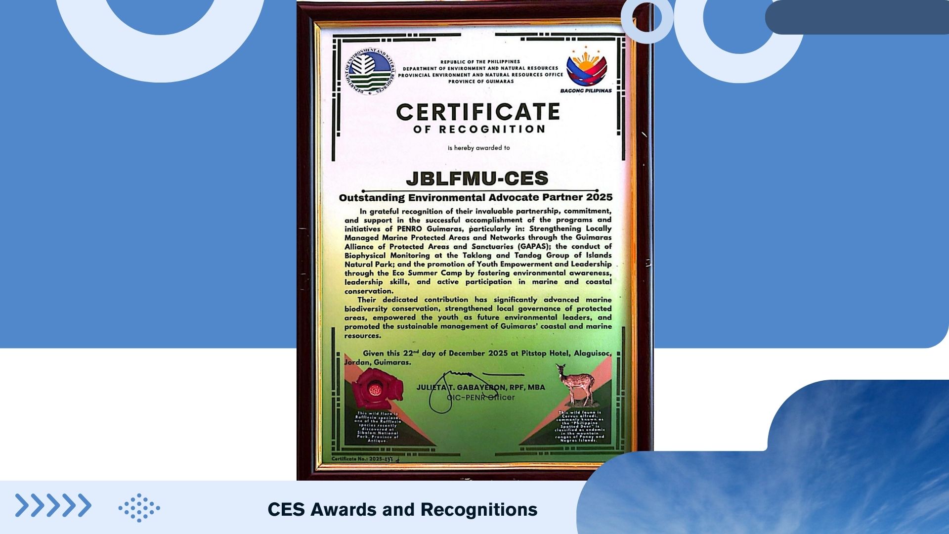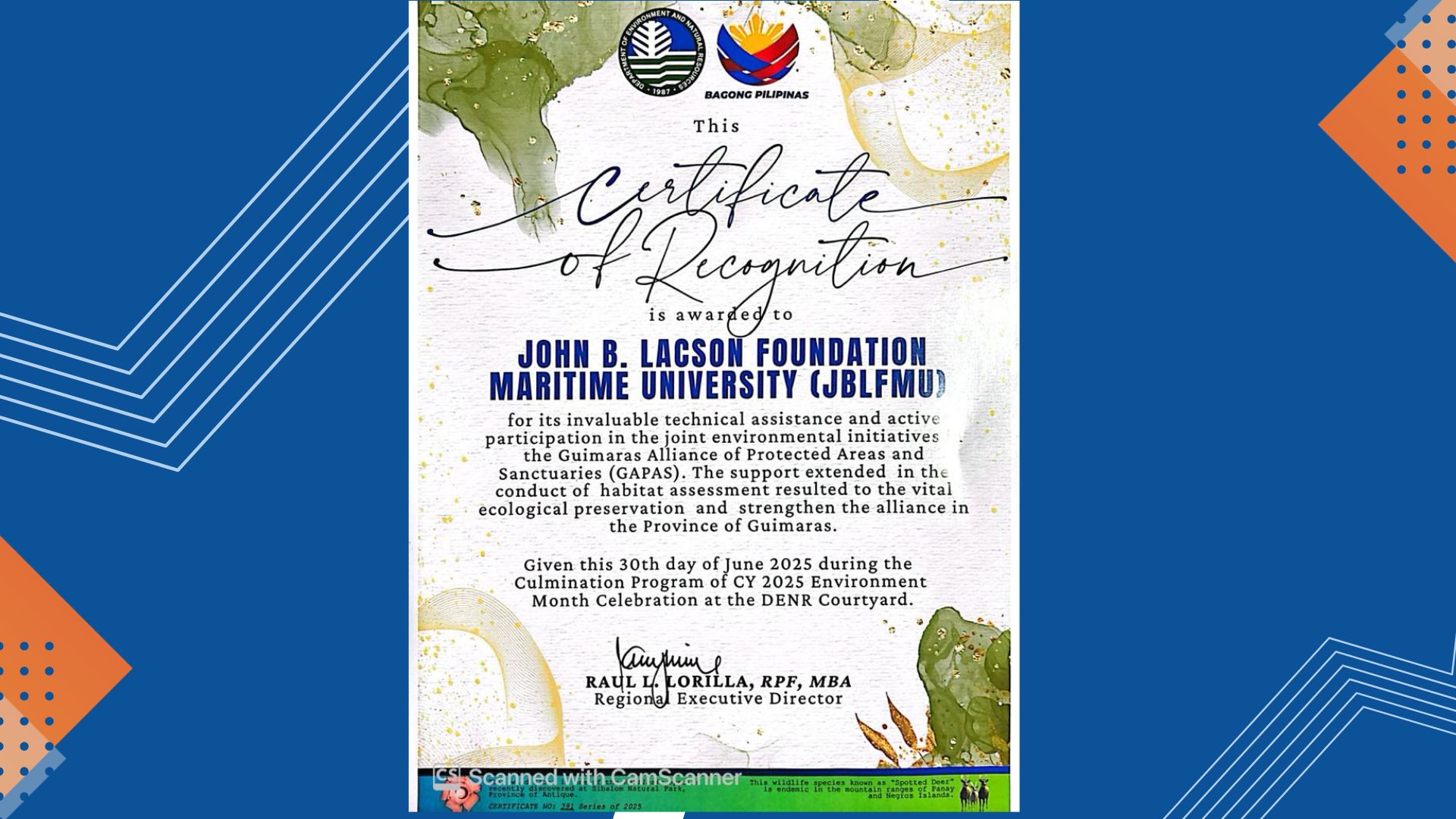 JBLFMU’s commitment to environmental protection once again shone brightly as it received a Certificate of Recognition from the Department of Environment and Natural Resources (DENR)–PENRO Guimaras. Th...